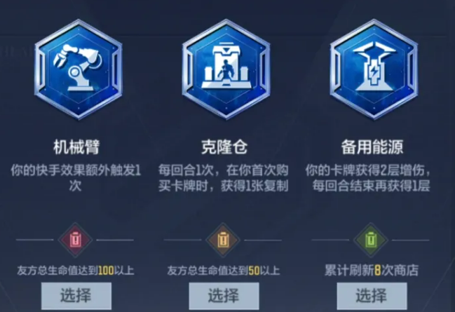 【人工智能】属于泛用型选项,不绑定特定流派,每回合可免费刷新一次卡牌池,并附带基础属性加成。对于卡组尚未成型、或需频繁调整战术方向的玩家而言,该选项容错率高、稳定性强,是可靠的兜底之选。