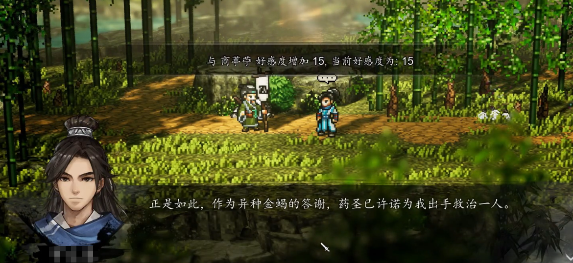 竹海位于大地图东南侧,入口无明显路标,需沿竹林密集区向纵深探索。抵达竹海深处时,自动触发剧情,首次见到药圣商葶苎。对话结束后,其好感度提升至“信赖”等级,并赠予【药圣医典】与【四关十二元经】两部核心典籍。前者是全游戏唯一可提升队友濒死恢复成功率的医术类秘籍;后者则强化内息运转效率,对长线战斗续航至关重要。