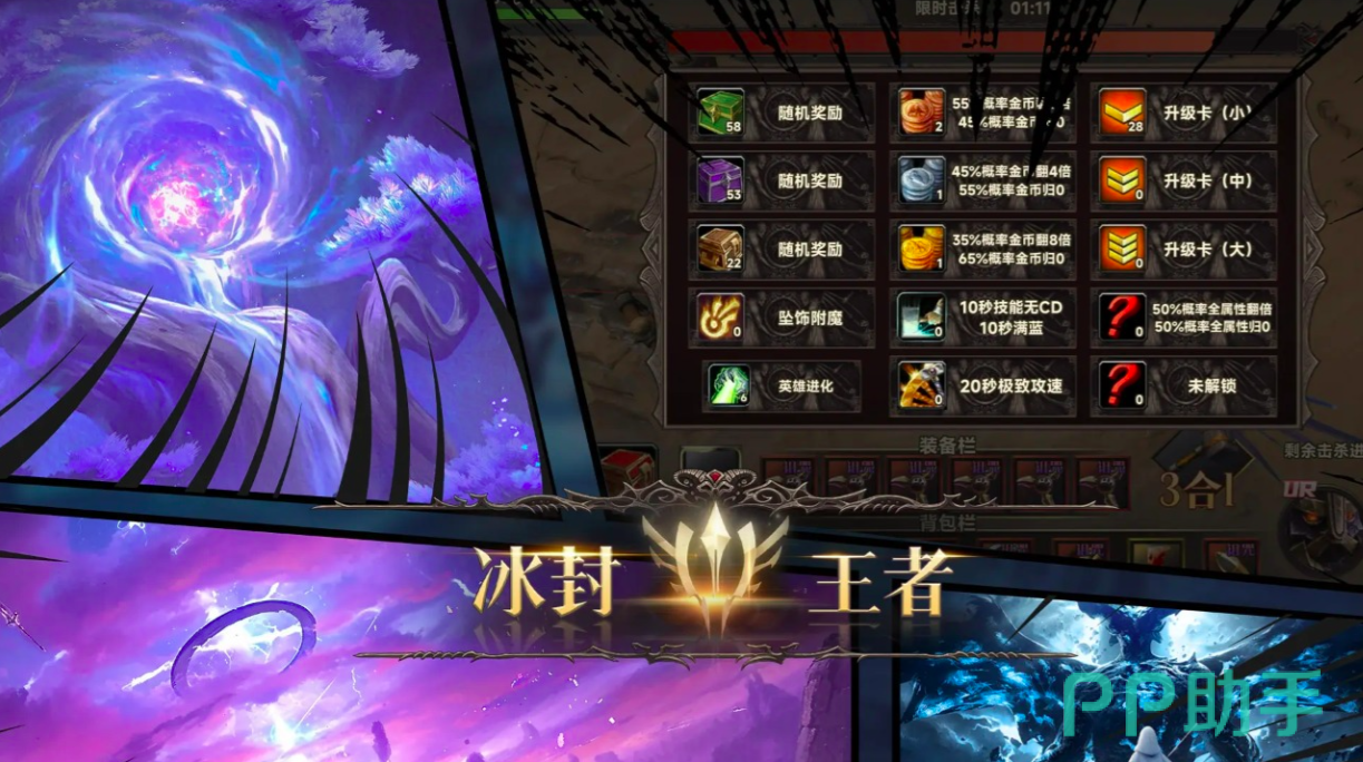 在视觉设计层面,《冰封王者:升级争霸》突破传统Roguelike品类常见的扁平化或像素风范式,采用西式奇幻美学为基底,融合哥特纹样、霜晶质感与动态环境光效,配合高精度粒子渲染技术,使每场战斗都具备电影级镜头张力与沉浸式节奏感。