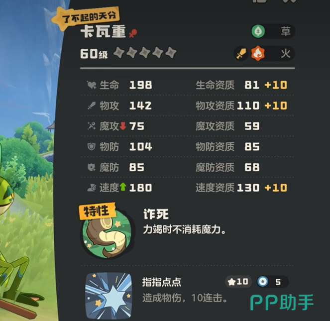 生存保障方面,“移花接木”兼具回复与战术撤退双重价值:释放后恢复自身20%最大生命值,并立即返回背包,规避被击败风险,回血后可随时再次上场投入战斗;而“指指点点”作为十连击技能,虽单次伤害偏低,但总伤可观,且对拥有特定被动特性的目标存在额外增益,使其在应对特殊机制敌人时更具策略纵深。