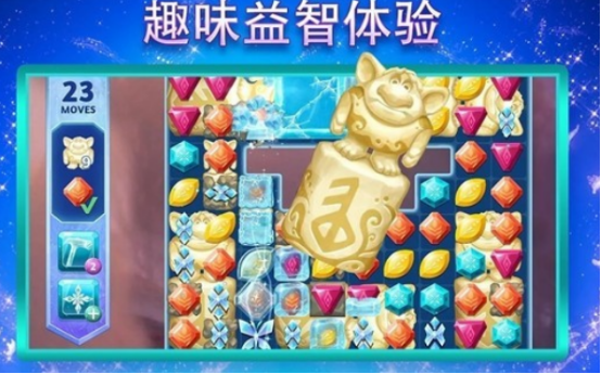 融合三消闯关与王国模拟经营双线玩法,高度复刻阿伦黛尔王国建筑风貌与自然景观。玩家可操控多位电影角色参与剧情推进,在保留原作关键场景基础上拓展原创支线故事。核心采用滑动匹配三颗及以上同色水晶的消除逻辑,操作门槛低,但关卡任务类型丰富——包括收集指定道具、解救被困角色、激活魔法阵等,需在限定步数内达成多重目标,考验规划能力与资源分配意识。