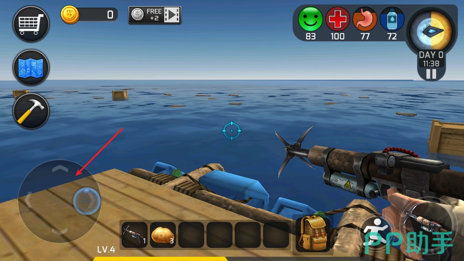 游戏构建了一个极度真实的海上生存环境:无补给、无坐标、无援救。玩家初始仅拥有一叶木筏,在无垠海面漂流。通过钩索收集漂浮物获取木材、塑料、金属等基础资源,逐步扩建筏体、搭建净水器、安装防护网,并应对突发的暴风雨、鲨鱼袭击等威胁。系统对饥饿、口渴、体力与精神状态均有细致模拟,生存压力层层递进。