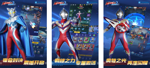 获圆谷正版授权的科幻题材卡牌游戏,美术风格融合赛博朋克与昭和特摄元素。世界观设定于2099年地球,玩家扮演光之国驻地球联络官,通过战术部署指挥奥特曼小队执行防卫作战。全角色语音由日本声优团队录制,含日语原声与中文配音双版本切换功能。