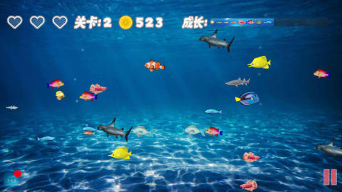 本作融合轻社交与竞技成长机制,构建出一个色彩明丽、生态活跃的热带海底社区。玩家从微小磷虾开始积累能量,在摇曳海草与游动鱼群间穿行,既要规避突然现身的掠食鲨鱼,也要把握时机完成关键捕食。游戏内置多层级外观系统,支持解锁带粒子光效的稀有鱼形;背景音效细腻自然,整体节奏舒缓却不失策略张力。