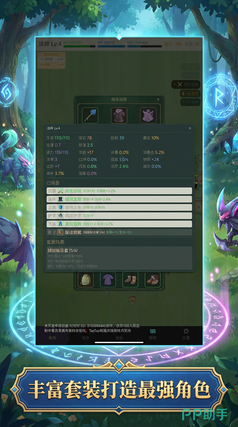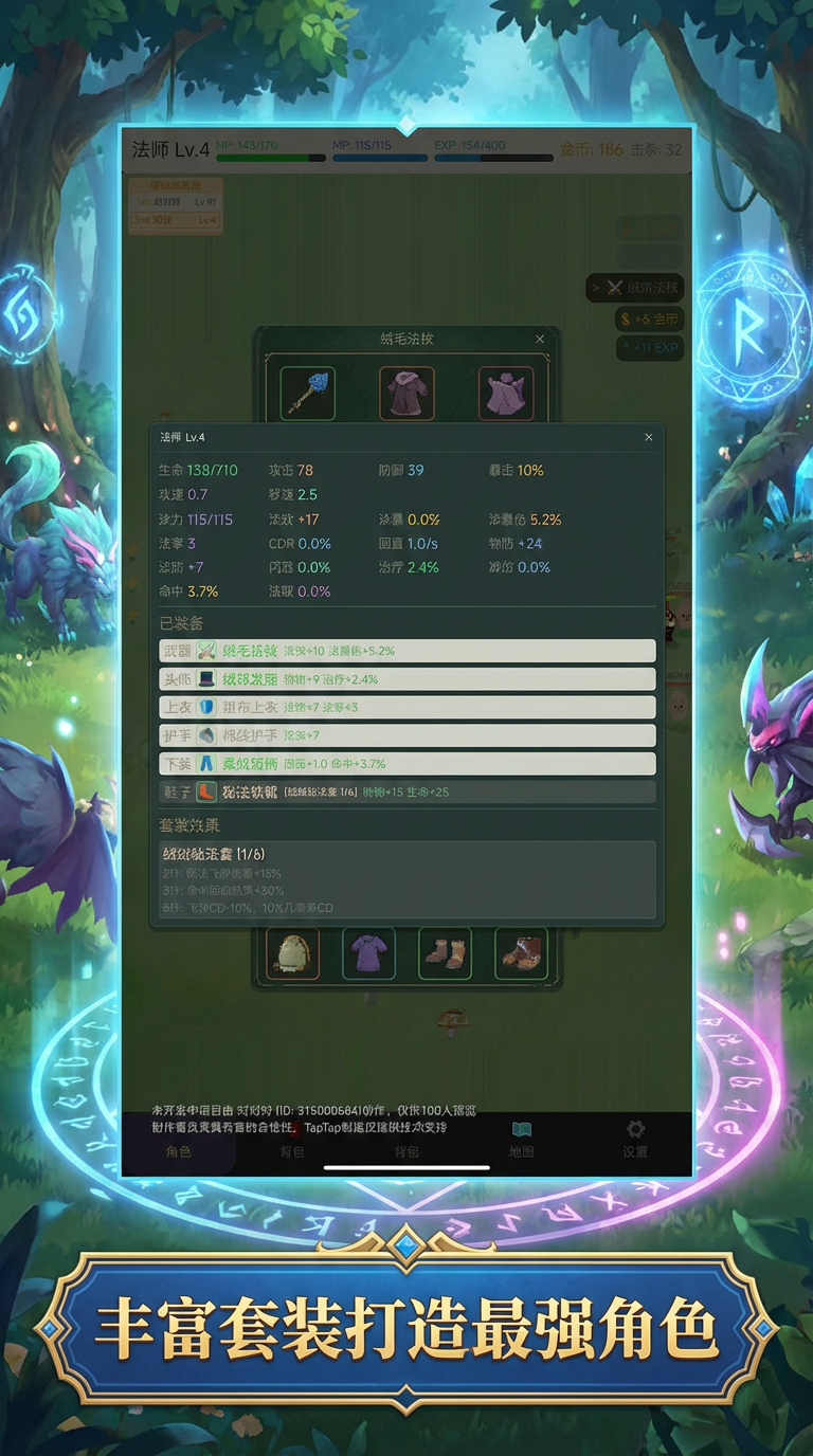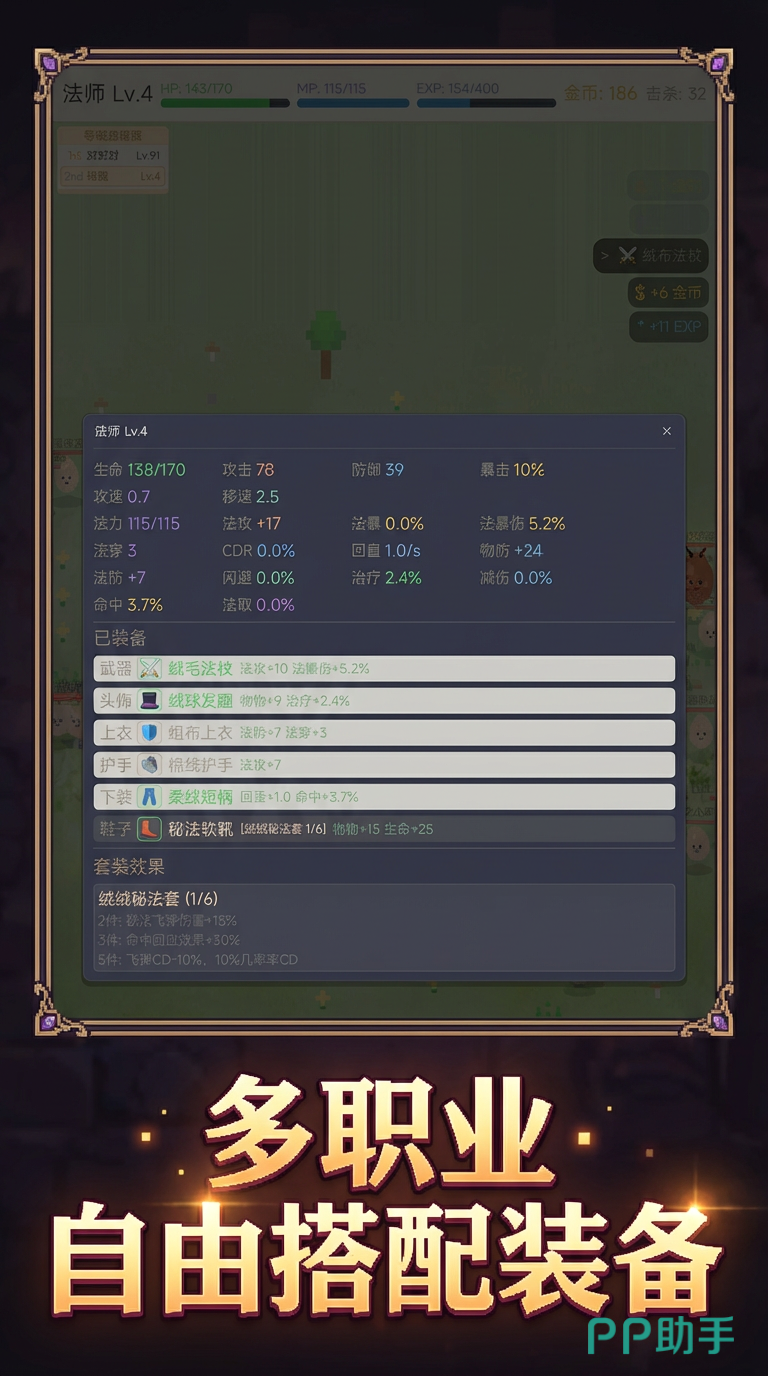 所有装备均含基础属性,并随机附加1至3条词缀效果。内置智能挂机系统,可设定指定地图区域自动寻怪、施法、拾取战利品,具备基础战术判断逻辑,实现真正意义上的离线成长。