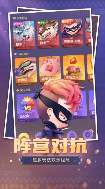 融合狼人杀等二十余种经典桌游规则的轻量级社交推理产品,单局时长压缩至数分钟,适配碎片化聚会需求。阵营划分为三大体系,内置20余种职业身份,段位晋升后可逐步解锁隐藏角色。支持语音转文字功能,兼顾静音环境下的战术沟通;提供多声线切换选项;家族战模式嵌入卧底机制;另设虚拟育儿系统,子代角色将继承双亲特质,拓展长期养成维度。