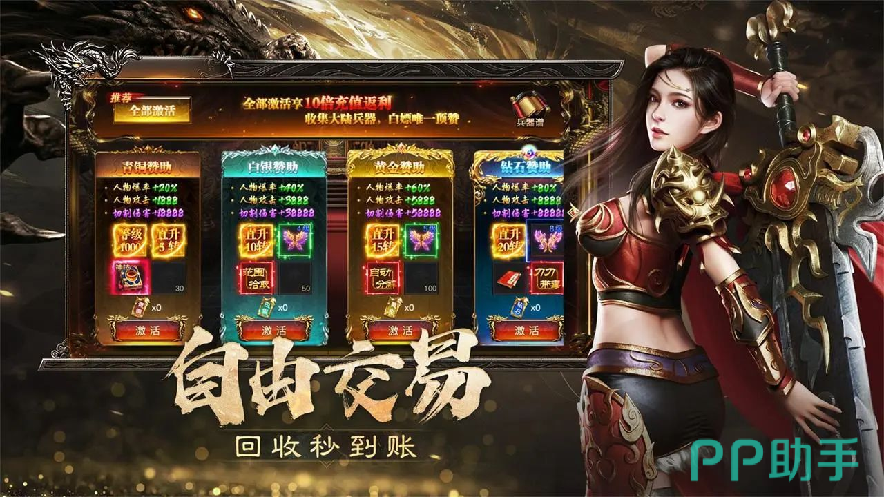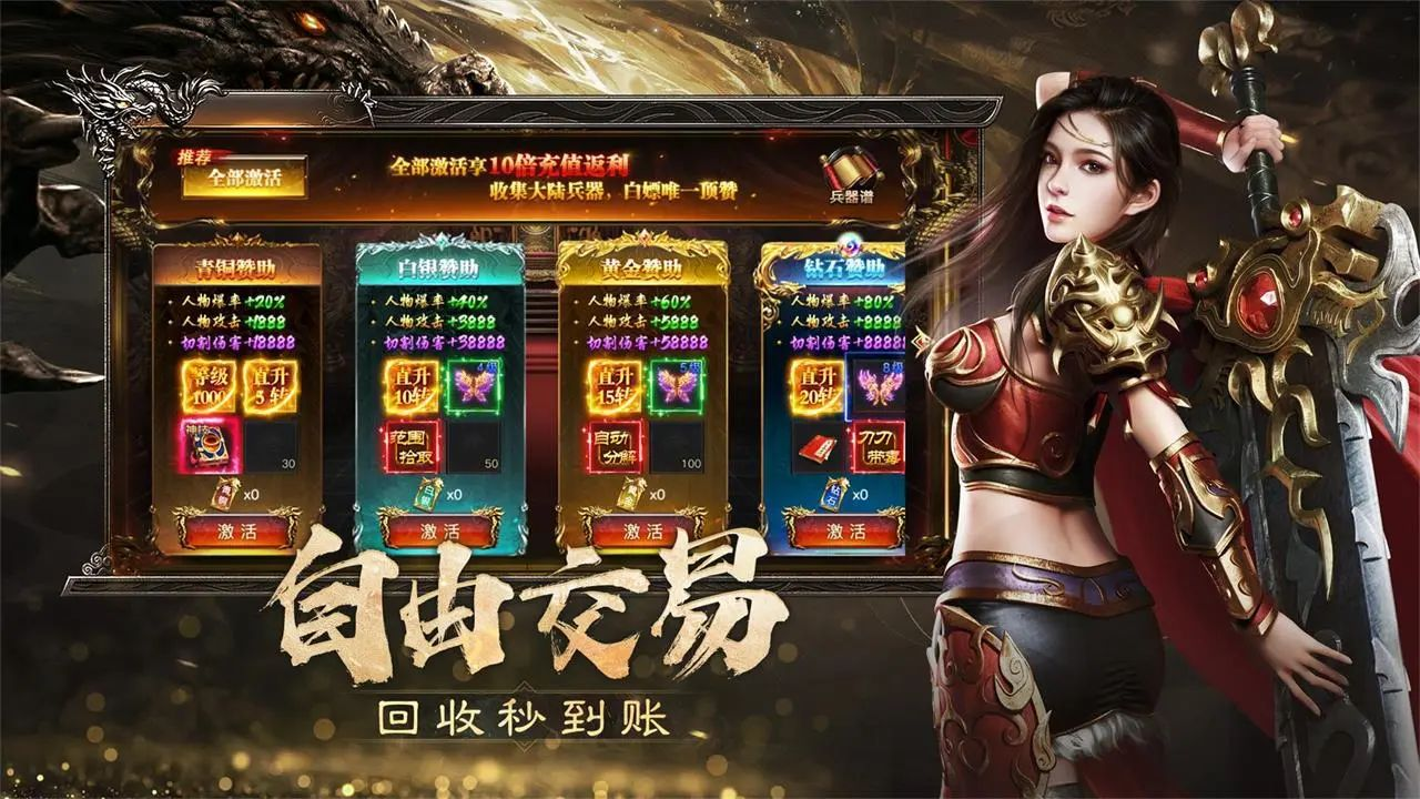 游戏内置丰富福利体系:每日登录即送重置卡,持续发放免费赞助资源;野外击杀怪物触发红包抽奖机制,零氪玩家亦可稳定获取高价值道具。角色养成路径清晰,战力提升不依赖时间堆砌,资源充足即可快速突破瓶颈。全场景采用高清渲染技术,人物建模细腻,动作流畅自然;时装系统涵盖上百款外观与专属特效,支持自由搭配。智能挂机系统支持离线收益结算,上线即可领取挂机期间产出的经验、金币及材料,兼顾休闲与深度体验需求。
