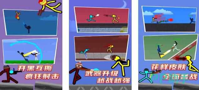 将大逃杀经典规则移植至火柴人世界观,构建快节奏生存竞技场。地图包含森林、废墟、高地、水域等多元地形,支持近战突袭与远程压制无缝切换。操作响应延迟低于80ms,缩圈机制动态触发,道具效果具备明确战术价值(如烟雾掩护、震爆干扰、能量回复)。每局对战时长约12–18分钟,强调临场判断与资源管理能力。