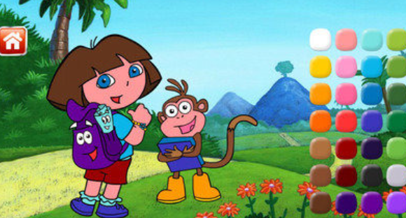 作为一款创意美术启蒙工具,游戏内置多幅以朵拉冒险故事为蓝本的线稿图库。支持触控调色盘自由选色,兼容单色填充与混色实验;提供画笔描边与喷枪覆盖两种上色模式,并配备即时擦除功能,容错率高。有助于提升色彩辨识力、图形边界感知及精细动作控制能力。