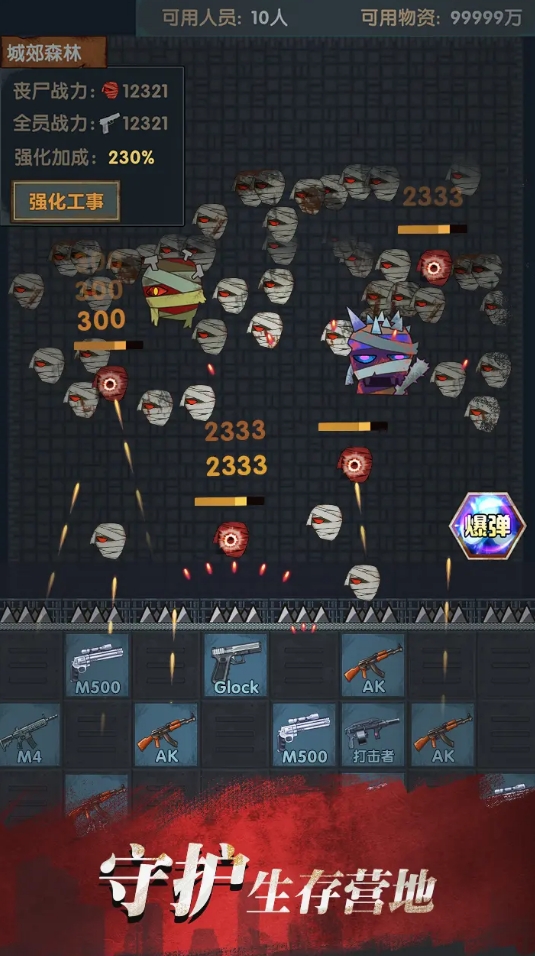 这是一款融合动作割草与基地养成机制的快节奏生存游戏。玩家操控唯一主角,每日定时离开安全区进入开放废土地图,通过技能树搭配与连招组合实现高效清怪,积累金属、药剂、蓝图等战略物资。返程后,既可消耗资源强化角色属性与装备,也可投入避难所升级项目,如加固门禁、增设陷阱阵列或扩建储藏空间,形成“外出战斗—回营建设”的正向循环。