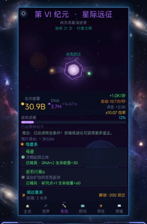 《进化之光》是一款以地球生命演化史为内核的轻策略模拟游戏,将数十亿年的生物进化历程浓缩为指尖可触的沉浸式体验。玩家无需复杂操作,即可从最基础的氨基酸出发,在原始海洋与早期大气环境中自主积累能量、触发变异、突破形态瓶颈——没有预设剧本,没有强制任务,每一次点击都真实影响进化路径,每一轮选择都可能导向截然不同的生命分支。