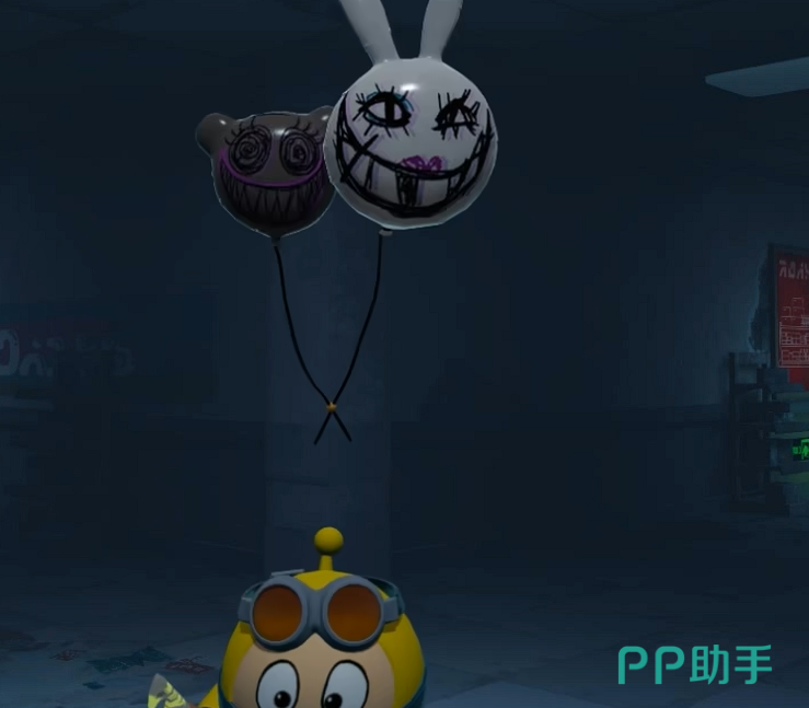新增敌对单位“熊兔气球”为本次版本核心设计亮点。该单位由熊头与兔头双气球构成,属首例天花板固定位移型敌人。常态下沿顶部轨道静默滑行,侦测到玩家后自动锁定正上方位置,并伴随轻微气流声效及表皮纹理躁动变化,形成明确追踪提示。其行为模式兼顾隐蔽性与可预判性,为后续战术配合提供操作空间。