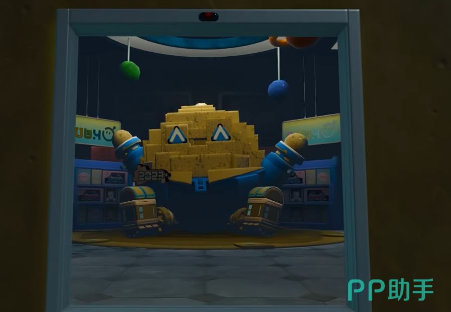 在柜台旁设置有一台交互式扭蛋机,满足指定条件后即可启动。扭蛋奖励包含四款限定道具:游戏机、敞开式蛋仔岛小飞机、宇宙飞船玩具、小卡车玩具。所有道具均为本次玩具屋版本独占宝物,静置于玩具区各隐蔽点位,需玩家自主探索发现。道具获取机制遵循随机掉落规则,单次通关无法确保全部集齐,建议多次进入并系统化排查未探索区域。