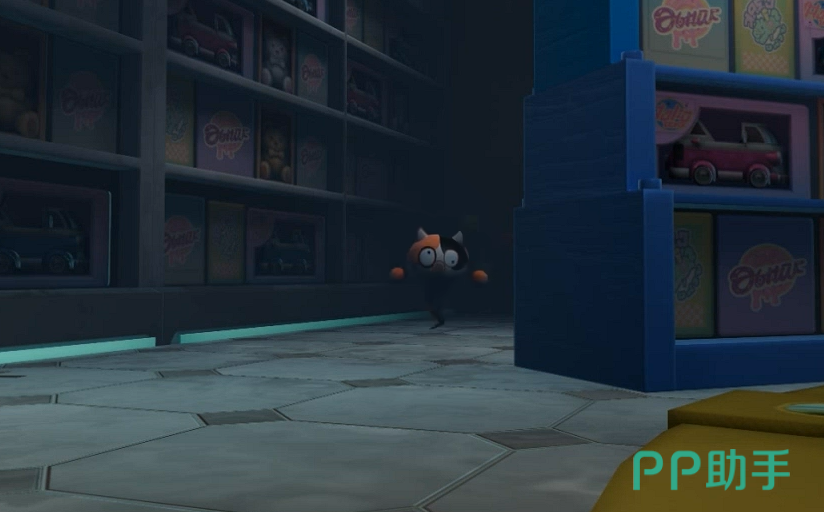 玩具区内部陈设高度还原实体玩具卖场结构:半空悬挂老旧褪色广告牌,货架整齐陈列各类封装完好的模型玩具。本应洋溢童趣的空间,因光线压制、音效克制及材质质感强化,营造出强烈的反差张力。这种风格转变并非单纯视觉调整,而是服务于全新玩法逻辑——高风险搜寻与动态威胁应对。