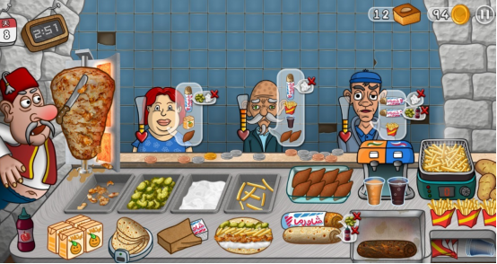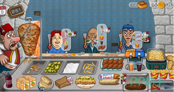 主打拟真经营与爆笑反差的模拟烹饪游戏。玩家需完整参与沙威玛制作全流程:切片、腌制、烤制、配料、包装,同时研发新配方吸引客流,并逐步升级土豆削皮机、自动包装机等效率设备。经营节奏紧凑,顾客反馈生动,升级路径清晰,兼具策略性与喜剧张力。