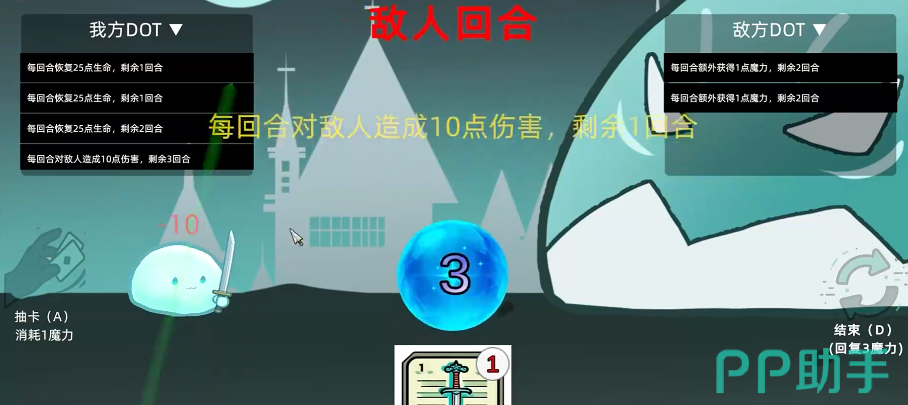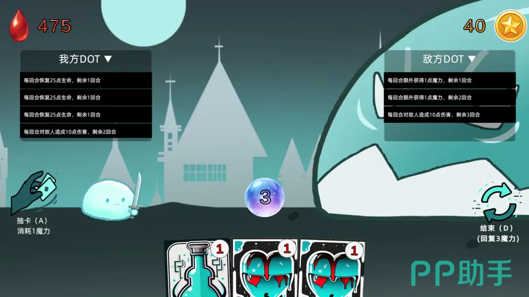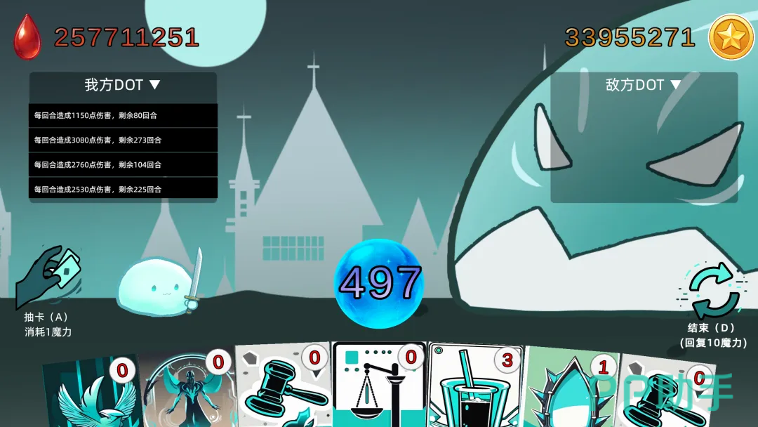 游戏采用经典回合制卡牌对战模式,每回合魔力自动恢复,玩家与Boss交替行动。需合理规划抽牌节奏,组合使用35张功能各异的卡牌,涵盖DOT叠加、资源调度、爆发终结及战术反转等维度。例如,“七宗罪”系列卡牌提供高阶博弈空间,“爆发”类卡则用于收束战局,形成层次分明的输出循环。