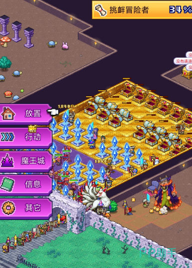 勇者进入魔王城后,将沿房间出入口之间的直线路径推进;撤离时则自动贴墙移动。因此,陷阱布设的关键在于锁定“入口→核心区域”的唯一通行路径,在此设置道路类陷阱可确保必中触发;而撤离阶段无需干预,勇者会自然绕开已激活陷阱区域。