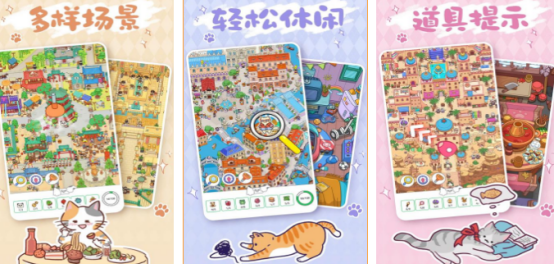 以猫咪主题构建轻量化寻物宇宙,所有场景均围绕猫系角色行为逻辑展开。小猫NPC具备主动交互功能——可触发提示气泡、标记可疑区域、揭示隐藏路径或激活彩蛋机关。场景设计强调趣味性引导,降低入门门槛的同时保留探索深度,适合全年龄段用户建立持续游玩习惯。
