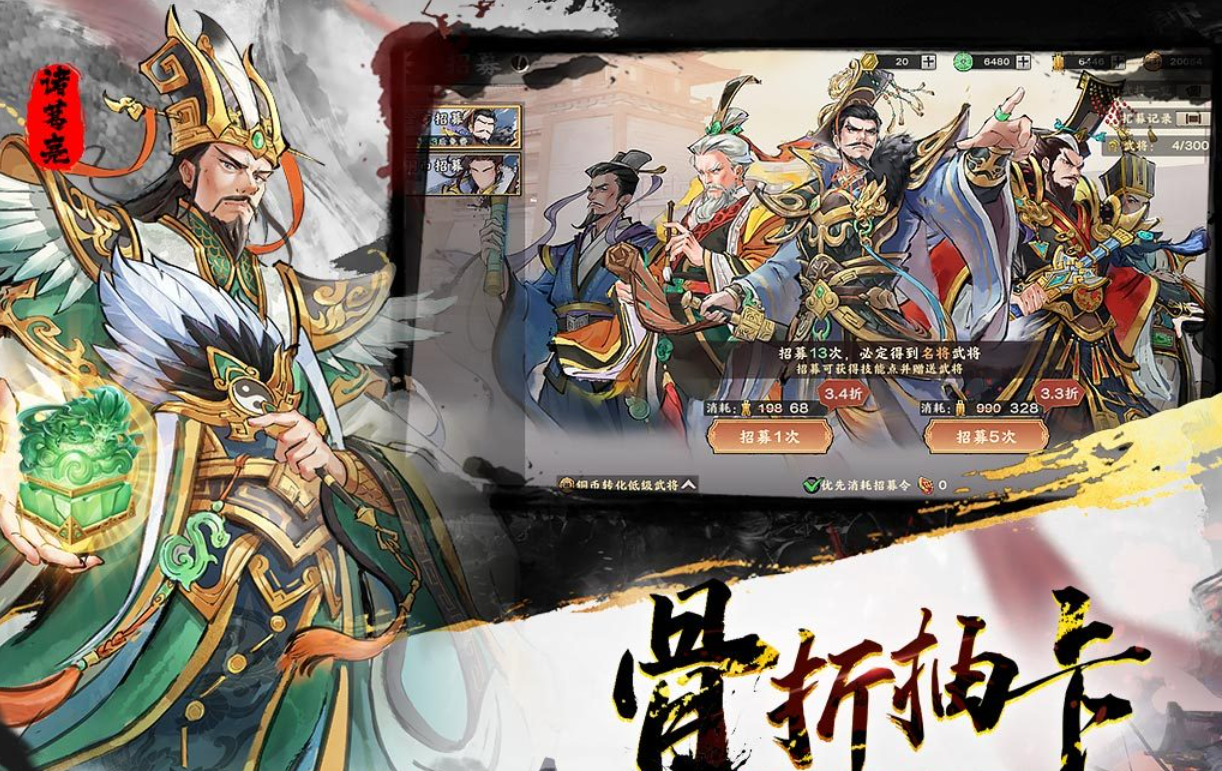卡牌策略向作品,武将获取依赖概率抽卡,但保底机制明确(90抽必得五星武将)。水彩国风界面搭配动态立绘,战斗采用半自动回合制,玩家需在关键节点选择释放技能时机。城池建设含农田、市集、书院等模块,产出资源直接关联武将培养与部队补给效率。