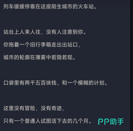 如果你倾向体验短流程、高密度信息量的剧情游戏,《残留之城》的框架设计恰好契合这一需求。游戏采用文字驱动+选择导向机制,玩家将扮演一名初抵陌生城市的外来者,随身仅有2500元现金与一份模糊的生存计划。所有日常开销——饮食、通勤、住宿、卫生等——均需精打细算,系统在写实逻辑基础上融入适度戏剧张力,营造出既贴近生活又略带隐喻质感的氛围。启动后直接进入主界面,首幕即为列车抵达城市火车站的场景。