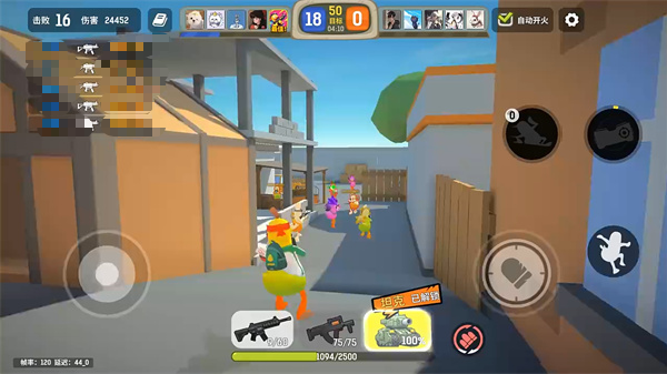 在实际对战中,武器切换操作直观便捷:屏幕底部设有常驻武器栏,包含当前角色已解锁的多把主副武器,轻触对应图标即可完成瞬时切换。需注意的是,每位鸭子角色均配备独立技能系统,开局前需根据战术定位慎重选择角色,并在战斗中通过右侧功能按键释放技能,提升团队协作效率。