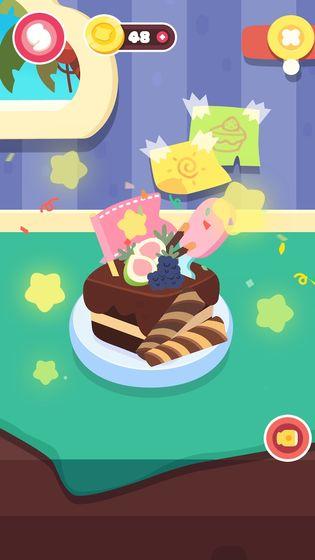 游戏以角色代入为核心机制,孩子化身蛋糕店主,从选材、搅拌、裱花到装饰全程自主操作。界面提供丰富食材图标(奶油、草莓、巧克力豆等)与工具组件(打蛋器、裱花嘴、烤箱),操作路径清晰、步骤提示友好,支持自由组合与试错反馈,有效提升手眼协调性与创造力。