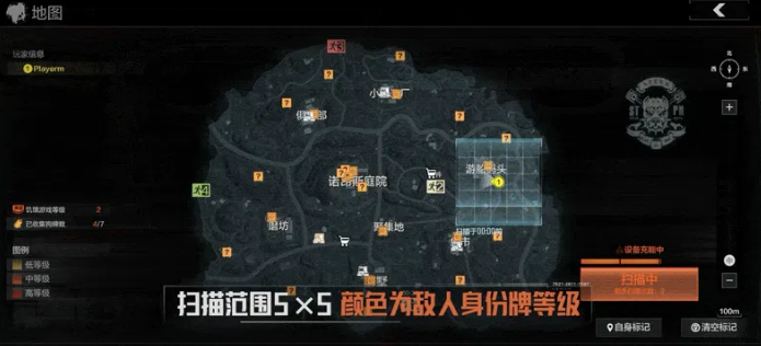 开局时系统将发放便携式扫描仪,可探测以自身为中心5×5格范围内的身份牌信息。扫描仪初始拥有3次充能,耗尽后自动缓慢恢复。扫描结果以颜色标识目标身份牌等级——颜色越深,等级越高,对应战力与携带资源越丰厚,但遭遇反制风险也同步上升。是否主动接战,需在数秒内完成战术决策。