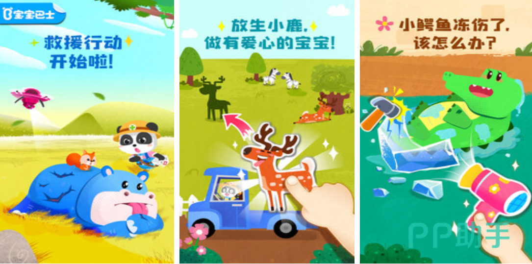 以动物保护为叙事主线的协作解谜游戏。孩子将操作救援车进入沼泽、冰川、火山等特殊地形,完成救助鳄鱼、河马、北极熊等濒危动物任务。每个关卡嵌入基础物理概念(浮力、保温、攀爬支撑)与急救常识(包扎、喂水、保暖),通过可视化操作建立因果逻辑。