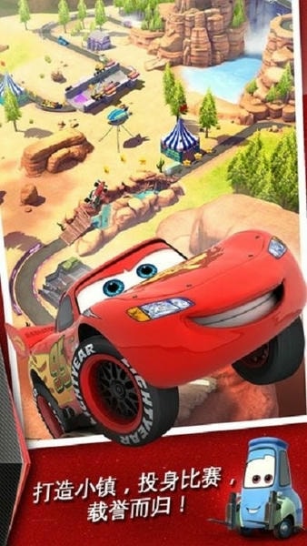 本作高度还原电影世界观,场景设计取材自经典动画片段,如水箱温泉镇、雷德蒙德山谷等标志性地点。车辆支持深度外观定制,包含动态喷漆系统、贴纸组合与灯光特效模块。全3D建模赛道具备物理交互特性,建筑可随碰撞产生实时反馈,配合动态天气与昼夜循环系统,强化真实竞速氛围。