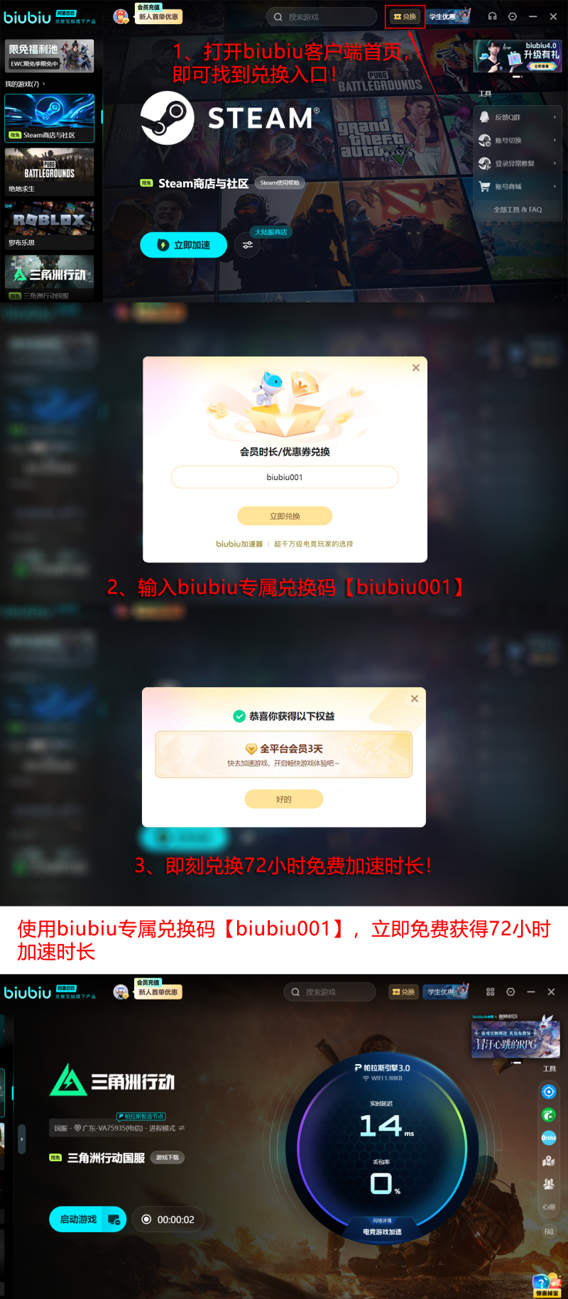 作为Pero职业战队官方指定网络加速工具,biubiu加速器已通过高强度实战验证,其提供的网络环境具备职业级稳定性标准。普通玩家亦可借此获得接近电竞级的连接质量。当前新用户注册即可获赠24小时免费加速时长;叠加专属兑换码【biubiu001】,还可额外领取3天加速权益。两项福利叠加后,总计可享96小时无门槛加速体验,充分满足深度测试与长期游玩需求。