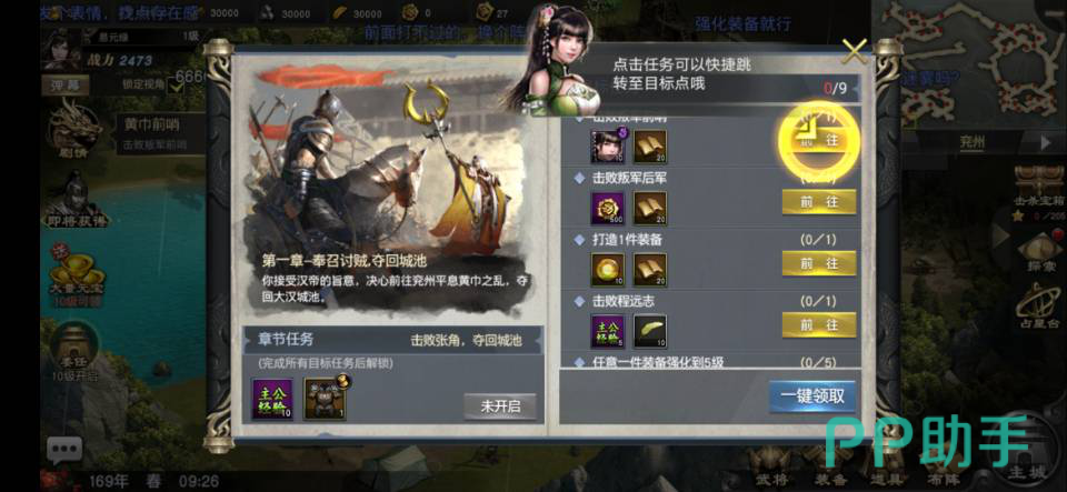 3.再告诉大家一个小技巧,我们点击章节任务大体浏览接下来的任务名称及任务的奖励,可以直接点击前往,人物就会跟进前往要寻找的目的地,大幅度节省了我们点击地面寻找的时间,可以直接触发沿路的叛军任务,只需要点击他们进行连击血量就会消失了。