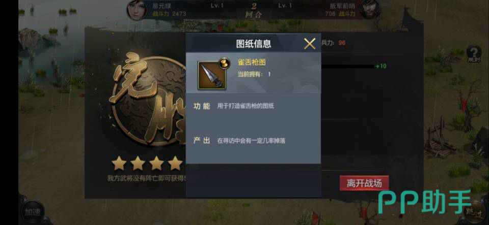 2.完成第一个任务后除了获得经验奖励之外,报酬相当的不错,直接就可以获得新武将S级的貂蝉,原来我们解救的蝉儿就是貂蝉,是一位辅助型的武将,除此之外战斗胜利还可以获得橙色的武器图纸,感觉福利很棒啊。