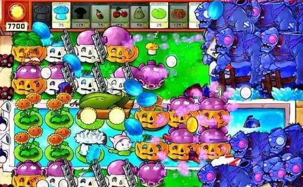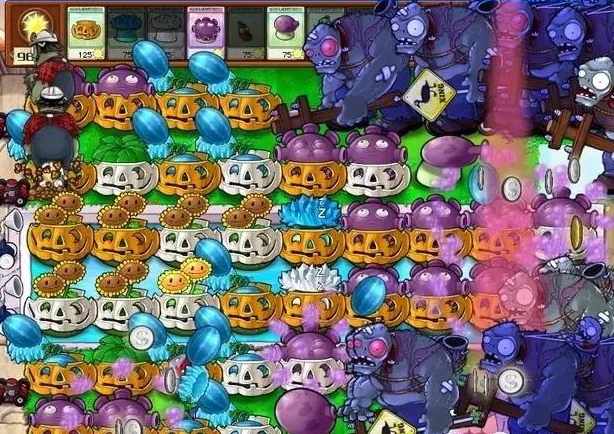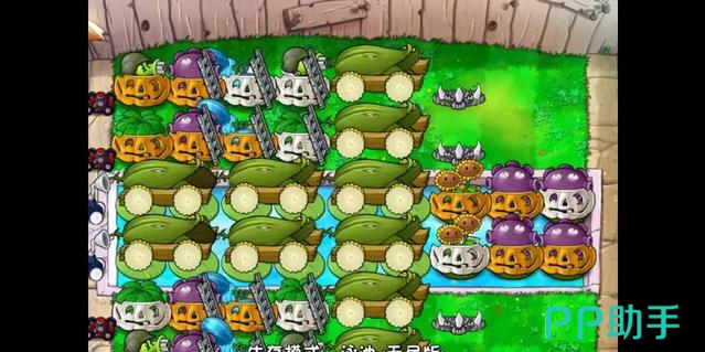 造满阵型后挑战一般僵尸多少没有什么花头,只需确保火力够、南瓜换的速度及时、日光也够了,就没问题了。(南瓜冷却时间不足,就选个变身茄子,如此总有二个南瓜了)