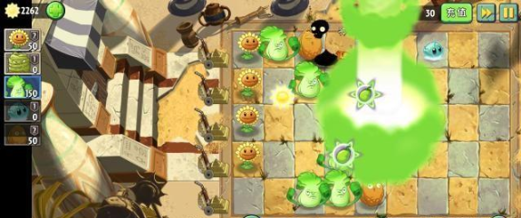 最后这波僵尸是最猛、同样是最多的这波僵尸,假如僵尸冲破咱们北路的防地,还要当即点一下卷心菜射手的大招,如此基础能打掉一大半的僵尸,能够暂且的获得减缓。最关键的是视察防地有无缺口,假如发觉残破的坚果,要当即在后边后边补好1棵,随后搭配冰冻生菜打掉所有的僵尸。