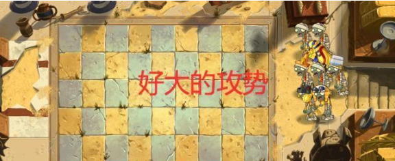 当秦始皇俯下身体的时候,则是他预备打击时,这时候预备好接招,他吐火球的话就在恣意位置快速放下冰菇;吐冰球的话必需相匹配在一路,当然你的植物被毁是防止不了的,他还是会用车扔靠后的植物,用脚踩靠前的植物,你必需立刻修复自己的阵型。