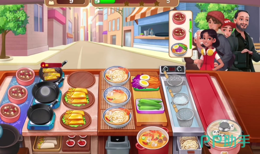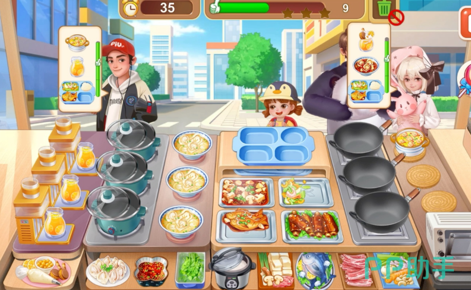 除此之外,如果小伙伴们在多次尝试之后发现自己实在是应付不来的话,还有一个方法,那就是喊上朋友一起来玩,直接将这一个关卡变成双人模式。可以先与朋友说好,一个人负责屏幕左半边的食物,另一个人负责屏幕右半边的食物,但两个人都要注意观察客人需要什么物品并及时点击,一般来说在双人模式下,想要通过这一关卡就会变得轻松不少,获得满星评级也是手到擒来的事。