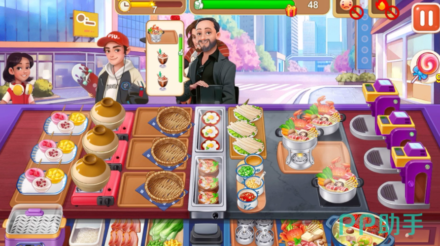 如果小伙伴们担心自己的手速不够或者是眼花缭乱,顾不过来客人的需求,那么可以在游戏开局之前使用道具,自动为客人上菜,这样玩起来就会轻松很多。其次,小伙伴们也记得多准备几个棒棒糖,如果客人们的耐心即将告罄,那么此时使用一个棒棒糖即可,让所有的客人都恢复耐心,是一个相当划算的道具。