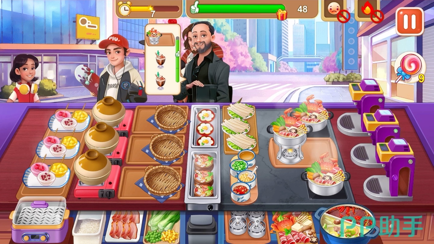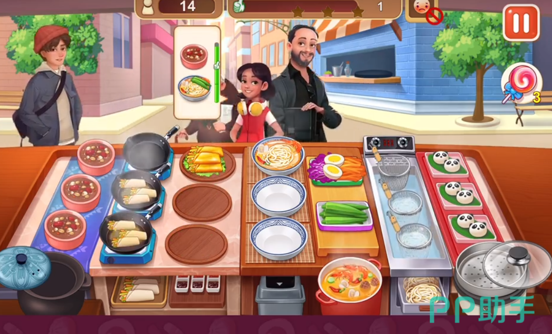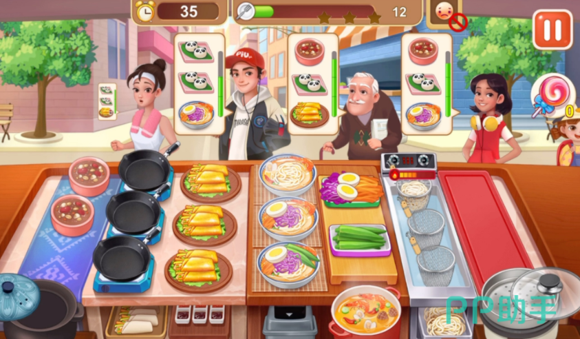 除此之外,小伙伴们也不要忘了恢复耐心的神器棒棒糖,这个道具可以说是相当划算了,只要使用一个就可以让摊位前的所有客人耐心值全部恢复到原始状态,因此如果小伙伴们想要通过这一关卡,也可以多携带几个棒棒糖备用,以免在手忙脚乱的情况之下,忽略了哪一位客人的需求。