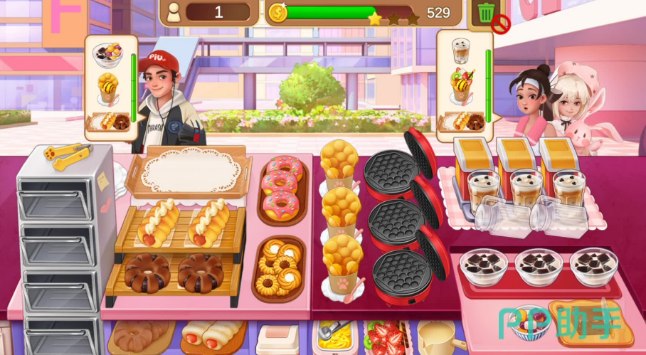 首先能玩到这一关卡的小伙伴们在手术方面一定都是毋庸置疑的,但在进入这一关之后,小伙伴们将会明显的感觉到有些力不从心,因为需要同时操作的东西非常多,无论是面包、鸡蛋仔还是龟苓膏都是需要动手加工的。因此小编建议大家最好是带一个自动给客人上菜的道具,这样可以轻松很多。同时也不要忘记多带几个棒棒糖,以提升客人的耐心值。