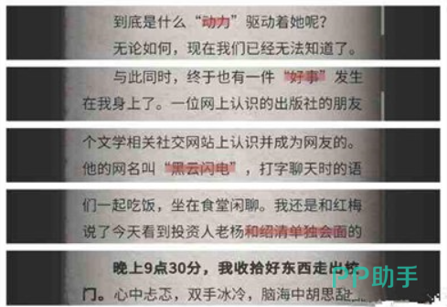 只有找到所有的关键词,才能往下推进。这种设计可玩性不高,许多被认为是提示结局的黑色标记的句子实际上无关紧要。