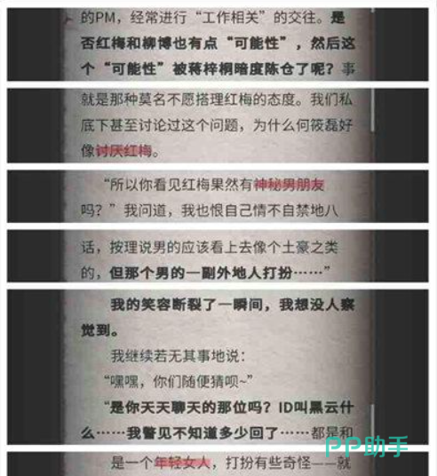 第七章和第八章的线索关键词是讨厌红梅,神秘男友和一个年轻女人。