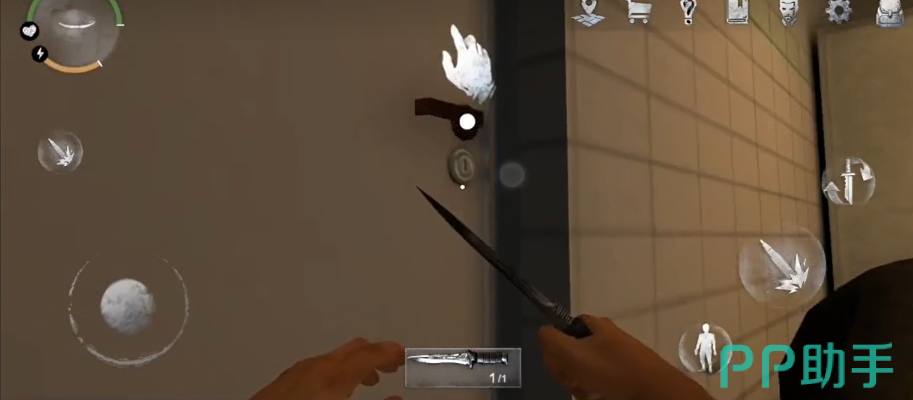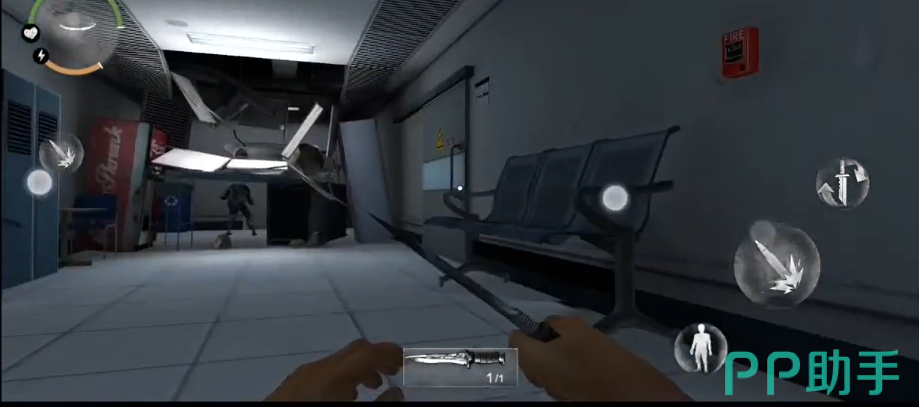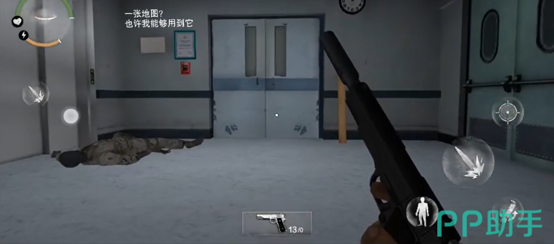 搜完实验室之后,玩家可以来到另外一间有尸体的房间里面。玩家可以从尸体里获得一把匕首。这将是玩家的基础防身道具。玩家继续向前探索,会碰到僵尸,通过防身武器就可以击败僵尸了。