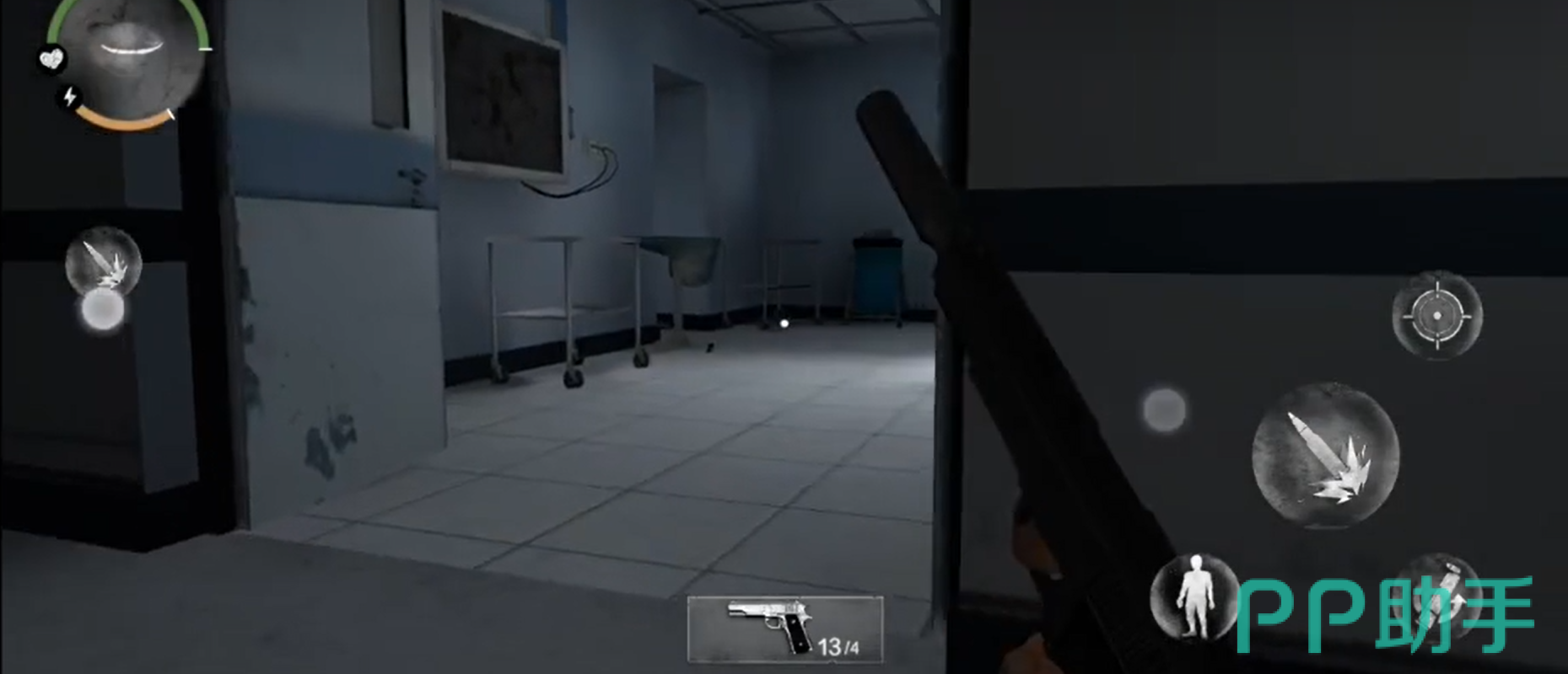 在刚进入医院的时候,需要先环顾四周观察一下环境,然后在大门口处先击杀两个小怪,然后在这里会出现一个冒着火的怪物,这个时候会被强制剧情杀一波,再次醒来的时候就会发现自己在一个手术室里,然后玩家需要先将有白色光圈的物品全部收集好后离开这个房间,一直往前走,在一具尸体身上发现一把刀,可以捡起来当做防身道具。