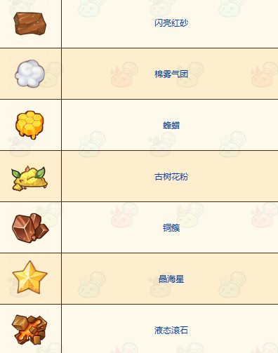 1、贴合剂:甜味黏土少量+魔法冰泉少量+增生土块大量