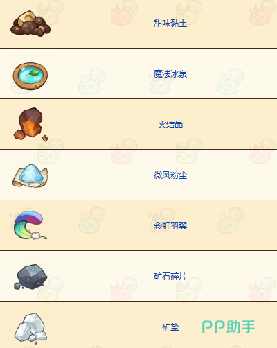 12、领航罗盘:魔法亓草少量+甜味黏土少量+魔法冰泉少量+微风粉尘少量+不老冰大量