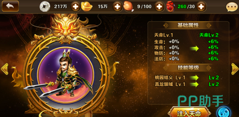天命相匹配单独人物,升级天命能够提高人物的四维属性,每级提高6%,最大20级。