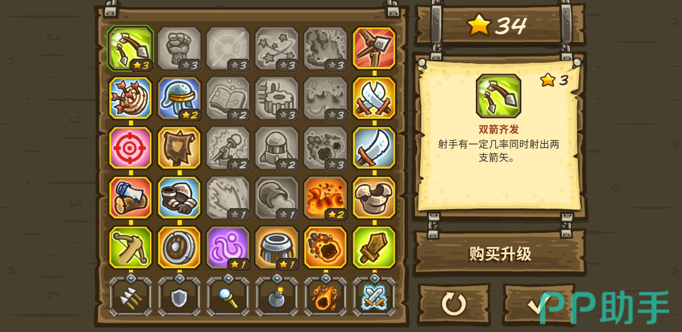 技能树方面优先雇佣兵和箭塔吧,在这关黄蜂特别多,使用箭塔能很好的抵抗他们的进攻,大量的野人使低等级的雇佣兵毫无还手之力,所以我们对其进行升级,经常使用的话效果非常好。剩下几点我们升级天火,以备不时之需。