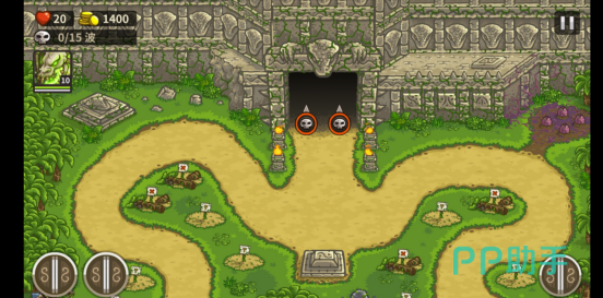开始游戏就解锁了掷斧手图腾,这是个很有用的辅助类塔,经常会用到。地图上有两条重要道路,后期还有由水路进攻的敌人。为了区分方便,我们称其上路和下路。