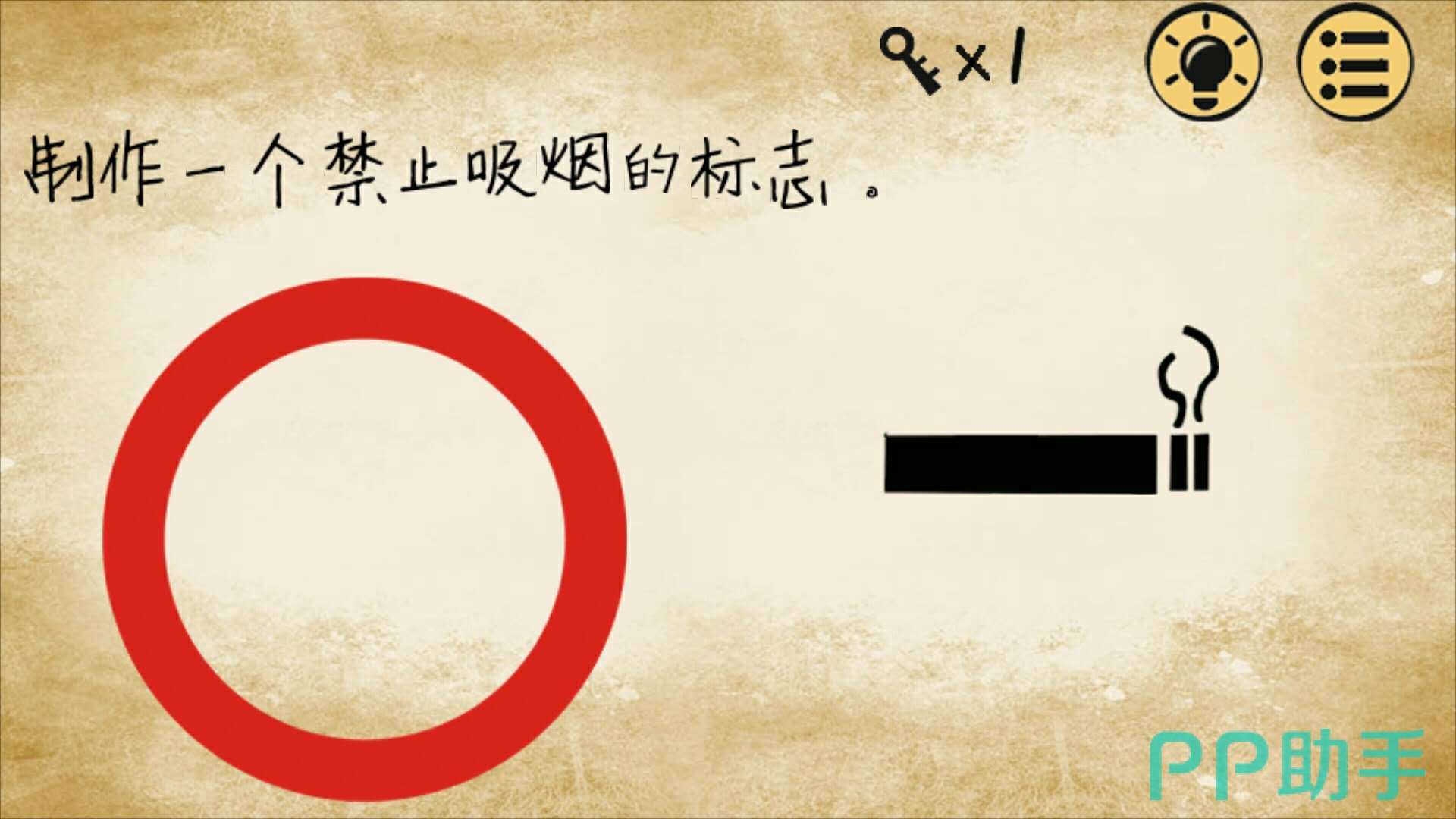 这一关作者又在玩文字游戏啦,只要把题目中的“禁止吸烟”四个字拉进红色圈圈内,就能做出标志啦!