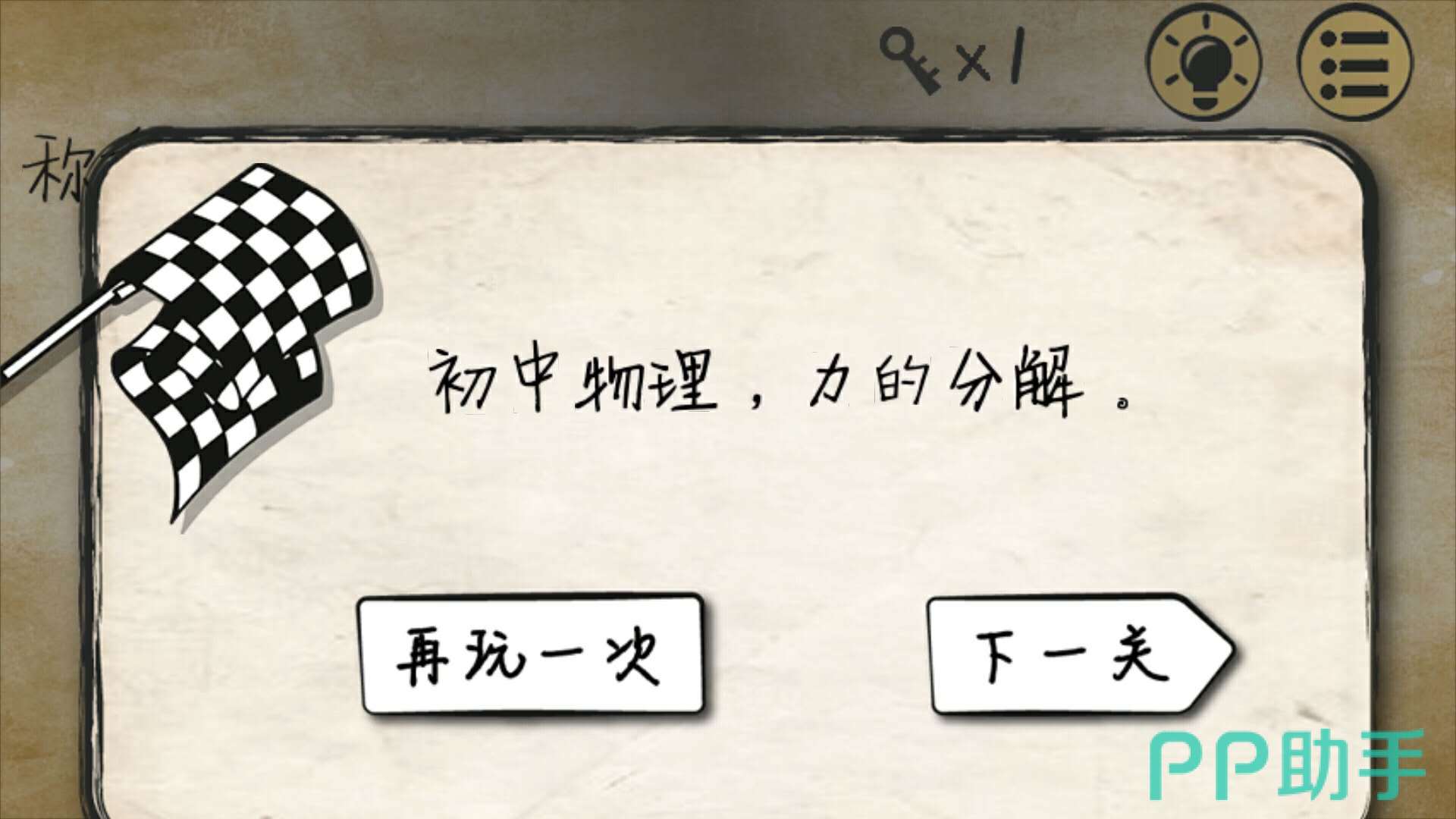 这一关的操作有点出乎意料,把手机反过来盖在桌面上,就能顺利通关啦!